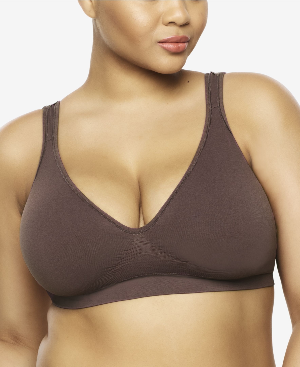 Soft, touch, seamless knit engineered 4-way stretch knit bra for the ultimate comfort bralette. Lace back adds a delicate touch.